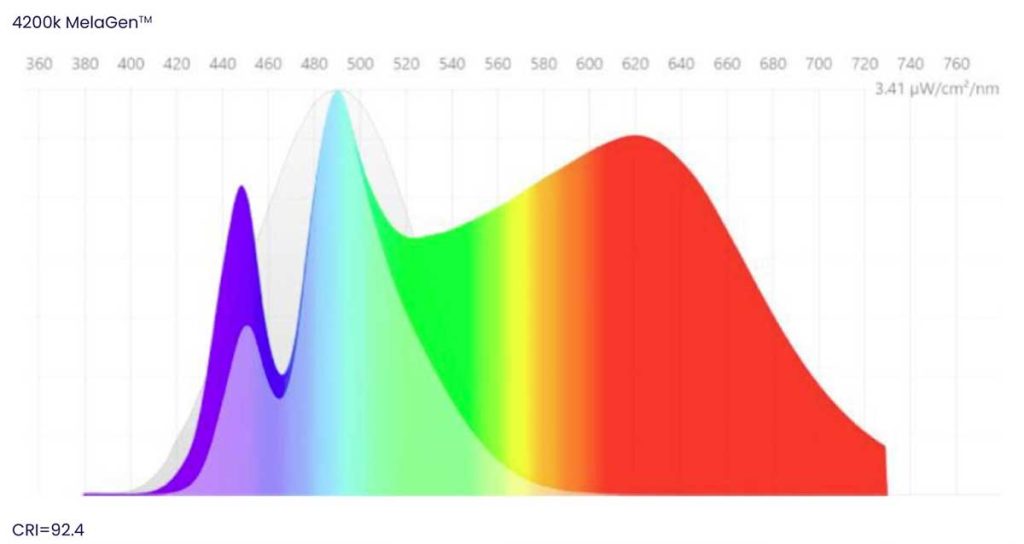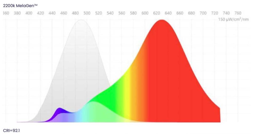 This is a measurement that demonstrates a light source’s biological impact on sleep and alertness. The M/P ratio is available for all MelaGen® products.