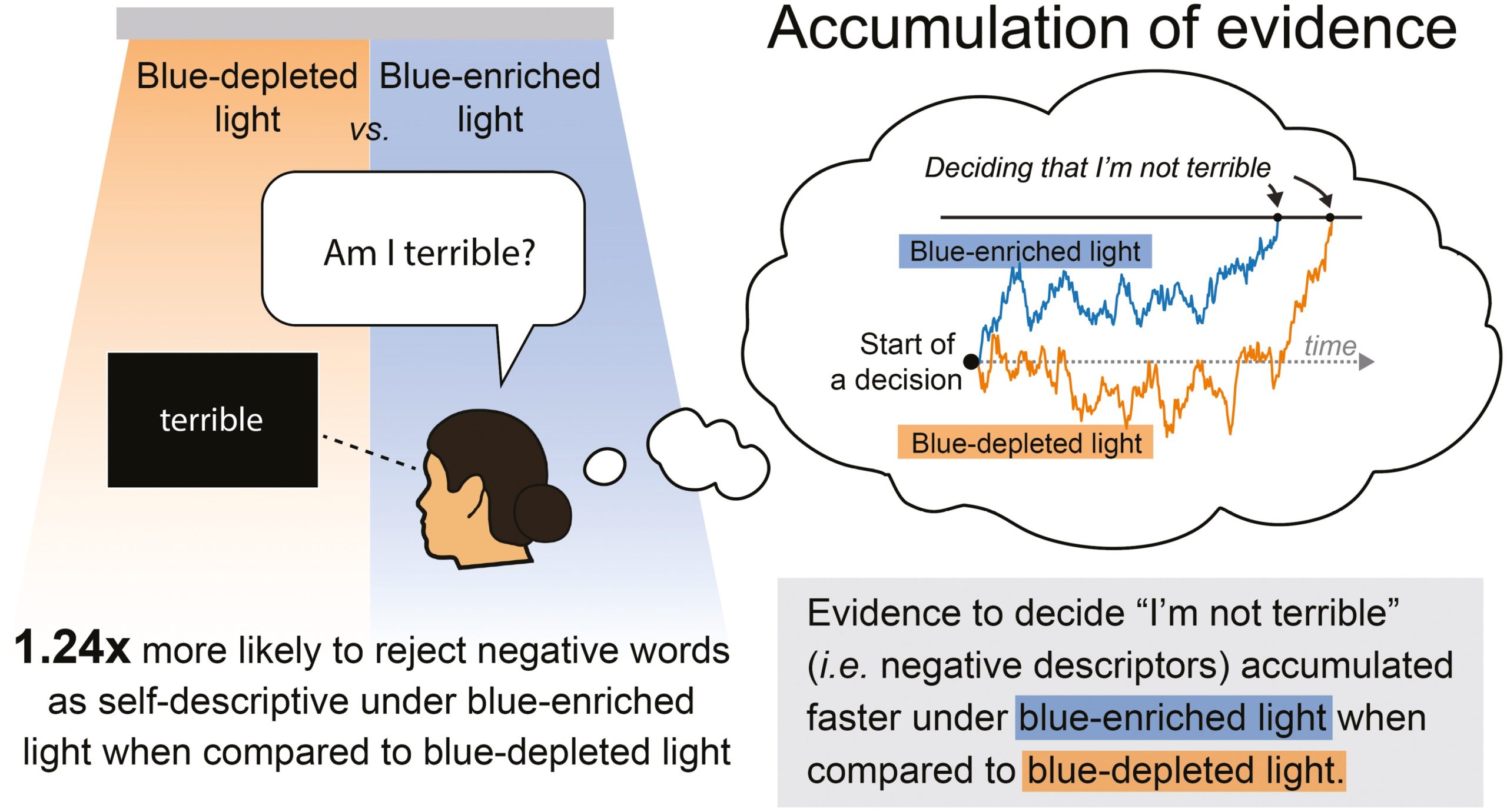 Blue light influences negative thoughts of self