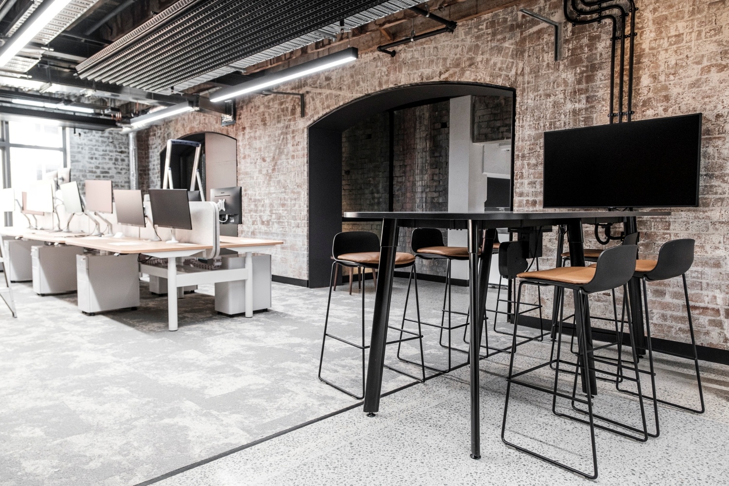 The INFINITI MelaGen® is a distinctive feature for the open plan that highlights the environment, utilising cutting-edge technology in LED design to produce high levels of blue light along with superb colour rendition to create alertness and positive effects on employee wellbeing, in concert with the large windows that deliver high levels of natural daylight, and complemented by its slick black colours to match the modern workstations.
