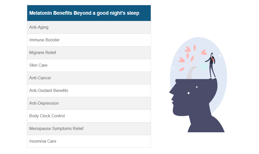 Beyond promoting a good night’s sleep, melatonin offers additional benefits: